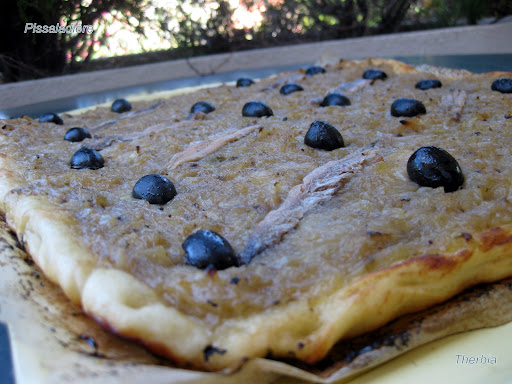 Je me suis donc lancée dans les recherches sur le net à ce sujet. J'ai ainsi appris que la véritable pissaladière, originaire du comté de Nice se faisait avec dupissala ou pissalat : ce sont des alevins d'anchois et de sardines mis en saumure, ce qui donneune pâte assez liquide donnant son bon goût à la pissaladière. Cette préparation particulièrequi coûte très cherest fabriquée par les pêcheurs locaux. La personne qui m'a renseignée a encore la chanced'en trouverde temps en temps à Antibes.