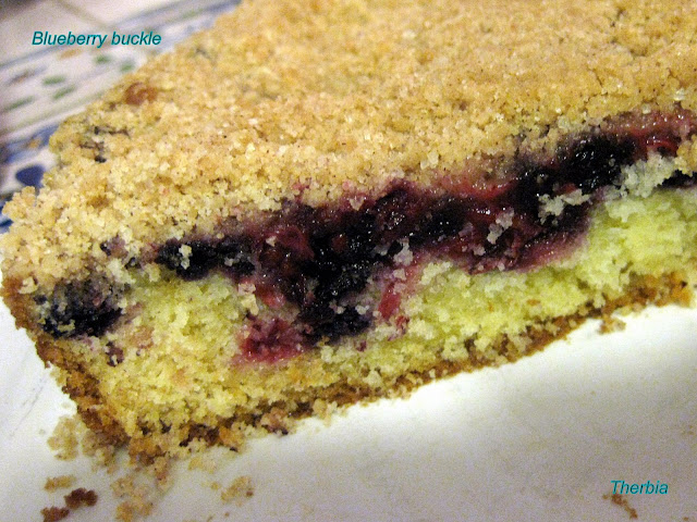 Le blueberry buckle (mot pour mot, "la boucle de myrtilles") serait l'un des plus anciens gâteaux américains, un old-fashionned dessert plutôt réputé. Classé dans les coffeecake recipes, le blueberry buckle fait partie de la catégorie des gâteaux qui se dégustent avec une bonne tasse de café ...